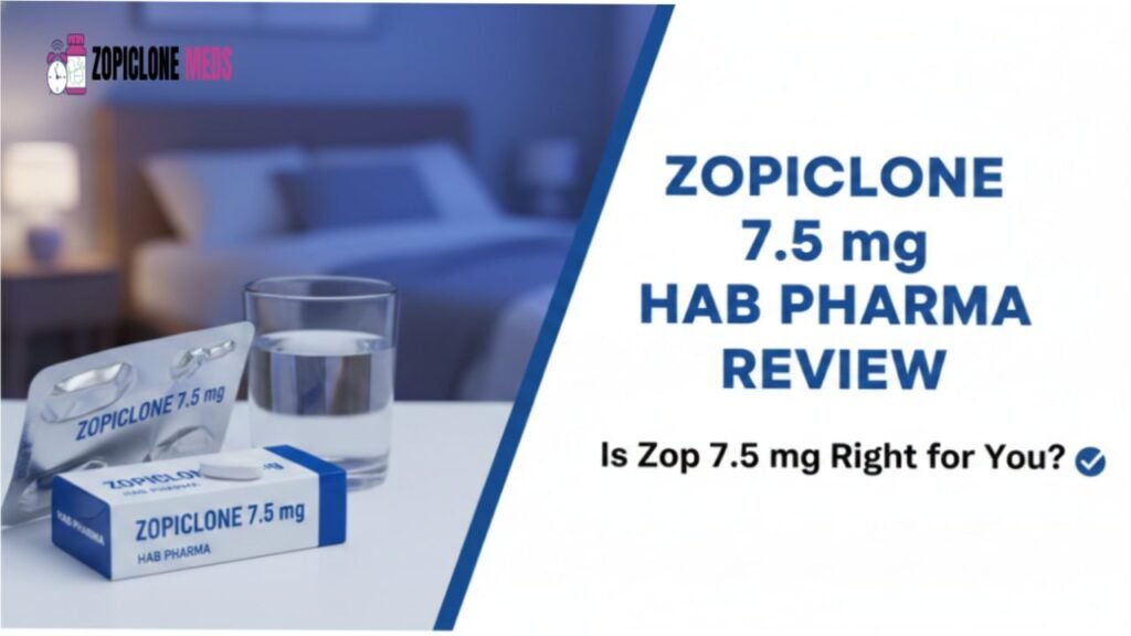 The Zop 7.5 mg tablet by Hab Pharma is a generic version of zopiclone. It is widely available online and often marketed as a more affordable alternative to branded versions.